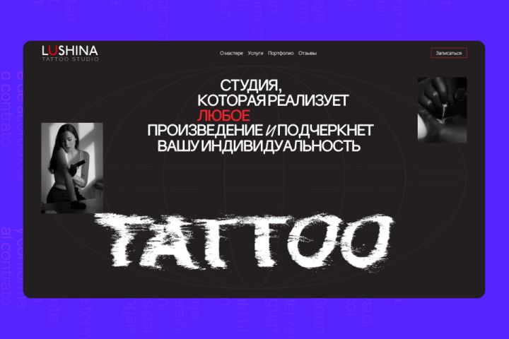 Разработать стильный и современный сайт для тату-студии, который будет привлекать внимание потенциальных клиентов и подчеркивать уникальность бренда. Сайт должен быть интуитивно понятным, визуально привлекательным и отражать атмосферу студии.