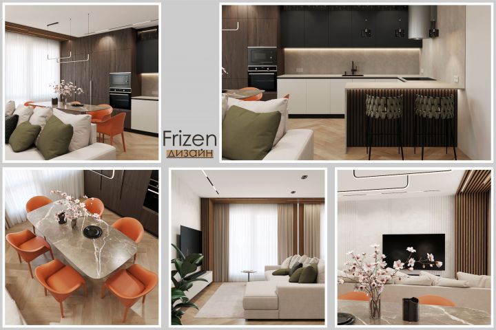 Дизайн кухни-гостиной с барной стойкой 25 м2