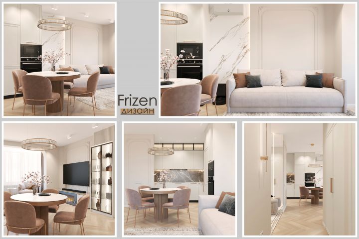 Дизайн кухни-гостиной с объединённой лоджией 25 м2