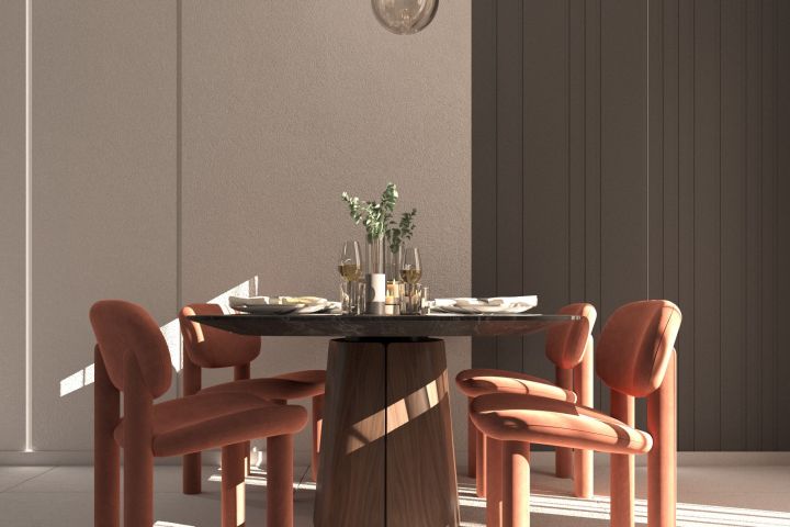 2. Использовал спокойные тона, акцентом были взяты обеденные стулья;