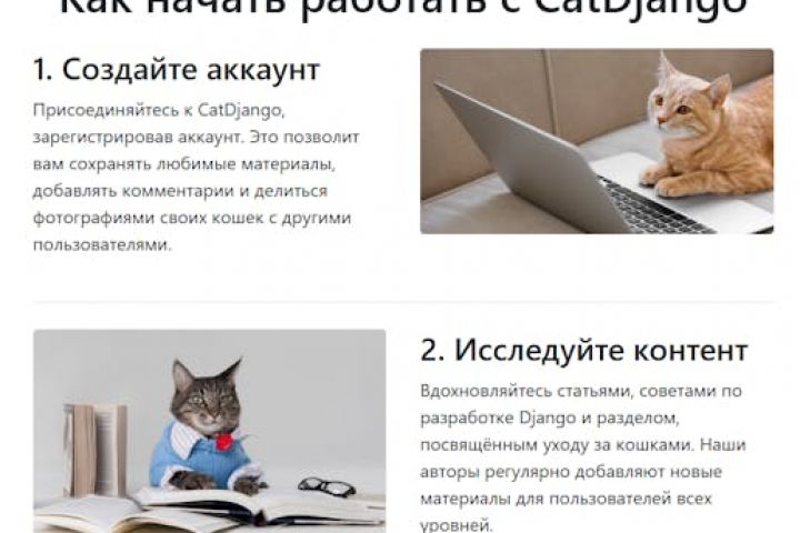 CatDjango — это уникальная платформа, объединяющая любителей кошек и разработчиков Django. Здесь каждый найдет что-то для себя: от полезных инструментов для разработки до уютного уголка для общения о пушистых друзьях.
