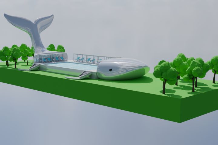Создание 3D-макета бассейна в форме кита для дизайнерского проекта в Москве.