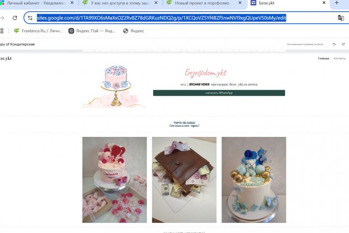 Сайт для рекламы изготовляемых тортов. Данные - стоимость и т.д не указаны. В портфолио шаблон.