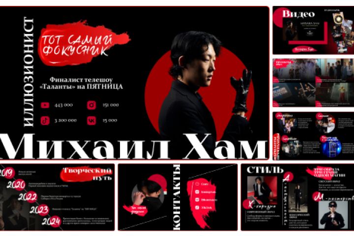 Создать презентацию для иллюзиониста, претендующего на премию Wedding Awards, которая бы передавала загадочную атмосферу японского искусства и подчеркивала уникальный стиль артиста.