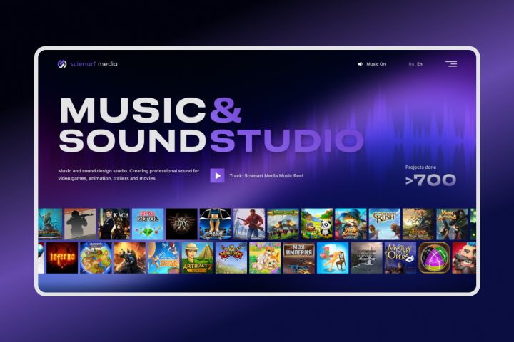 Дизайн сайта "Scienart Audio Draft" Программы для разработки: Figma, Adobe Photoshop. Выполнялась разработка дизайна. Многостраничный сайт.