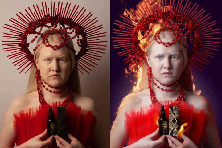 Целями данного творческого проекта было подчеркнуть акценты, сделать детализацию, проработать текстуры и создать непередаваемый визуальный стиль. Мы подчеркнули изысканность упаковок, создали богатство оттенков и цветов, и доработали общую картинку с помощью оверлеев и генерации дополнительных элементов.