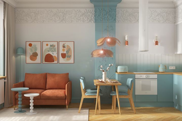 Основное настроение интерьера у нас определилось сразу - это свежесть, легкость, воздух, нежный морской бриз. Заказчице хотелось много белого цвета, но в то же время не хотелось типовых решений, строгого минимализма и простых линейных форм. Хотелось попробовать ярких красок, но не слишком вызывающих. Хотелось каких-то элементов классики, но не вычурных и не утяжеляющих пространство. Хотелось сделать нескучный и небанальный интерьер, но при этом уложиться в рамки небольшого бюджета. Интерьер должен быть под стать заказчице: лёгким, воздушным, женственным и напоминать о бирюзовом море даже в пасмурные питерские дни. Кажется, у нас всё получилось!