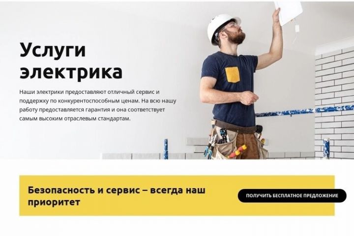 В нашу компанию обратился частный электрик с просьбой создать ему сайт-визитку. Мы учли все его пожелания и создали ему реально привлекающий клиентов сайт