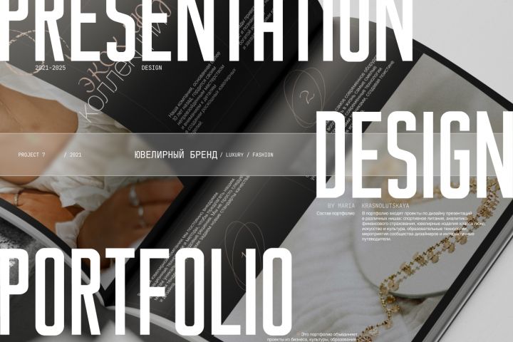 Решение. Презентация выполнена в тёмных тонах с акцентом на изысканную типографику и утончённую вёрстку. Визуальная концепция строится на сочетании элегантных шрифтов, плавных линий и стильных фотографий, передающих тактильность и изысканность украшений. Каждая страница рассказывает об эксклюзивных коллекциях, мастерстве исполнения и особых предложениях бренда, создавая атмосферу роскоши и доверия к продукту.
