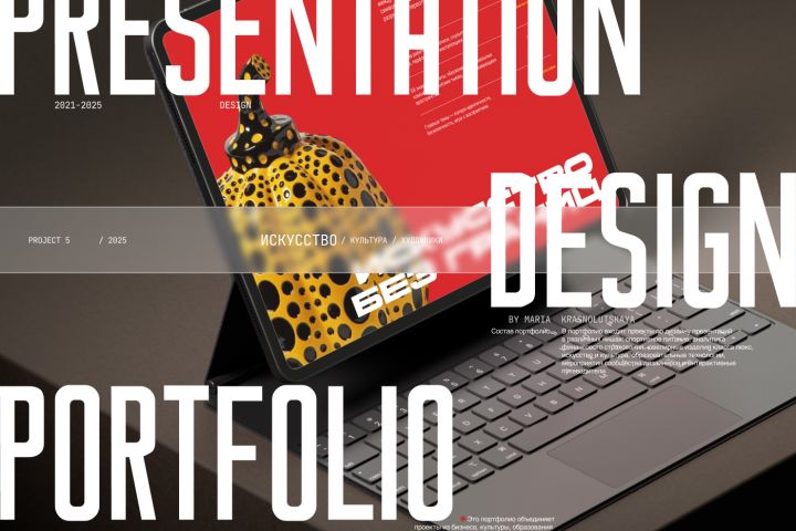 Задача. Создать эффектную презентацию о Яёи Кусаме, которая не только расскажет о художнице, но и визуально передаст её стиль – мир бесконечных повторений, точек и отражений. Важно было добиться яркого, запоминающегося дизайна, который бы поддерживал саму тему и вовлекал аудиторию.