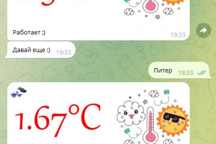 Хотел, чтобы можно было написать текстом название города, а бот сообщал бы текущую погоду в этом городе.