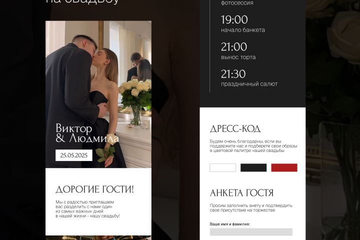 Сделать сайт визитку, для приглашения на свадьбу