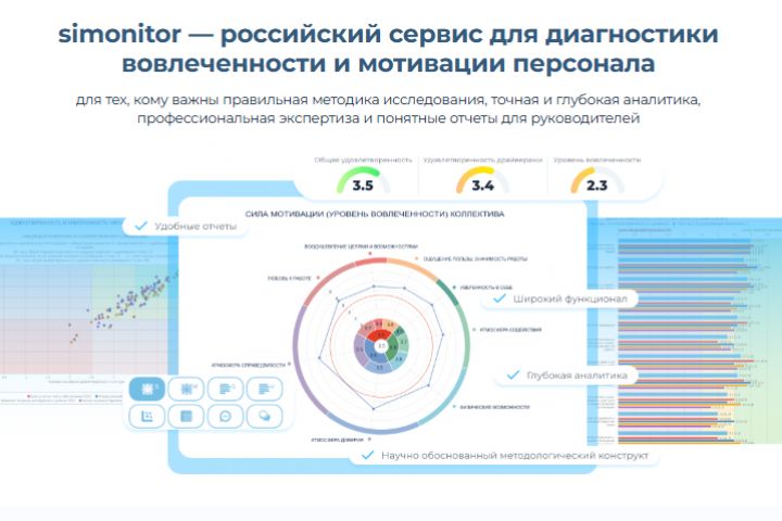 В результате реализации проекта клиент получил полнофункциональную SaaS-платформу SIMONITOR, которая успешно применяется российскими компаниями для анализа уровня вовлеченности и мотивации сотрудников. Платформа позволяет:
