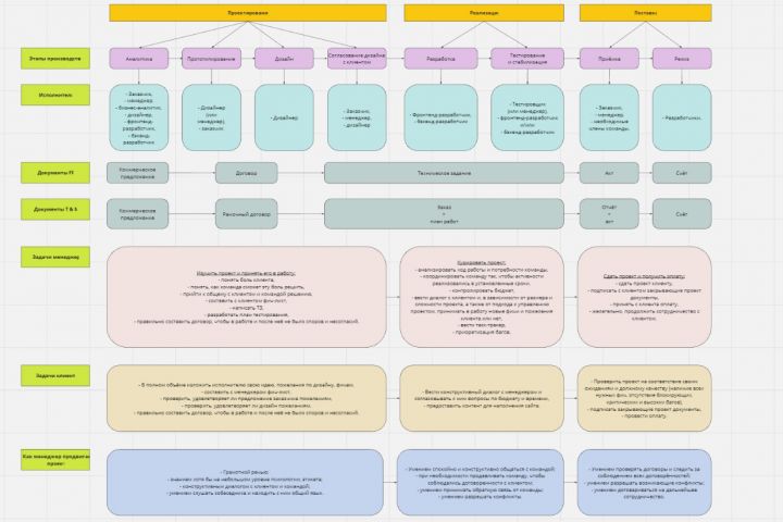 Выяснил и написал, чем и как менеджер продвигает проект на каждой его стадии.