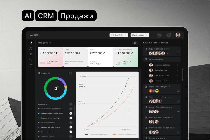 Проектирование и дизайн сервиса для руководителей отделов продаж. Сервис проводит качественный анализ продаж и сделок менеджеров с помощью ИИ