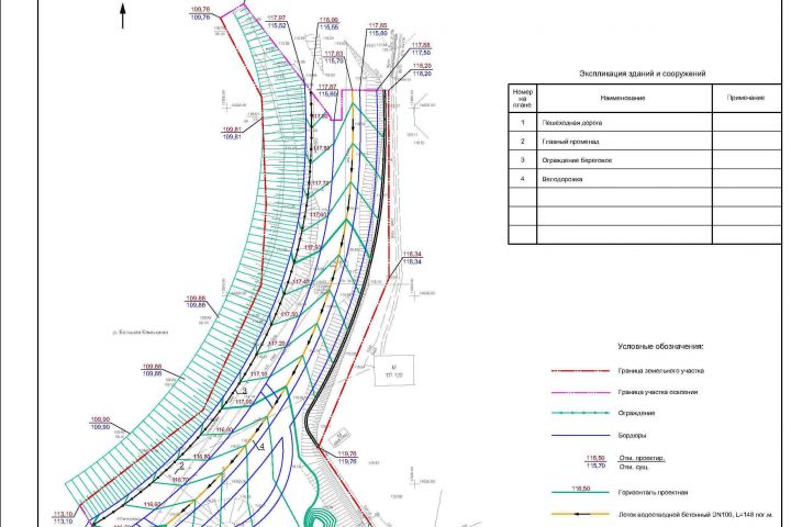 Выполнение раздела генплана набережной участка №1 стадии "Рабочей документации".