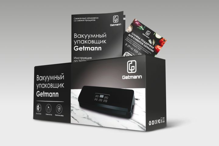 В течении всего лишь 5 дней нужно было разработать логотип, дизайн упаковки и полиграфические материалы для вакуумного упаковщика Getman.