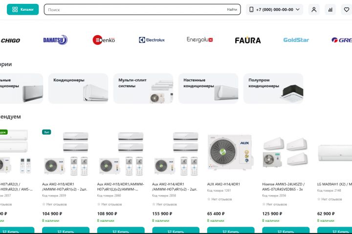 Перед нами стояла задача создать с нуля онлайн-магазин кондиционеров. Нам предстояло разработать всё с нуля: дизайн, категории товаров, их ценники и все необходимые детали, чтобы сделать товар привлекательным для покупателей.