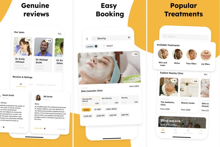 Пользователь имеет возможность найти подходящие по дате, стоимости, расположению услуги косметологов, записаться на необходимую процедуру и оплатить ее онлайн. После посещения специалиста пользователь может оценить косметолога/клинику.