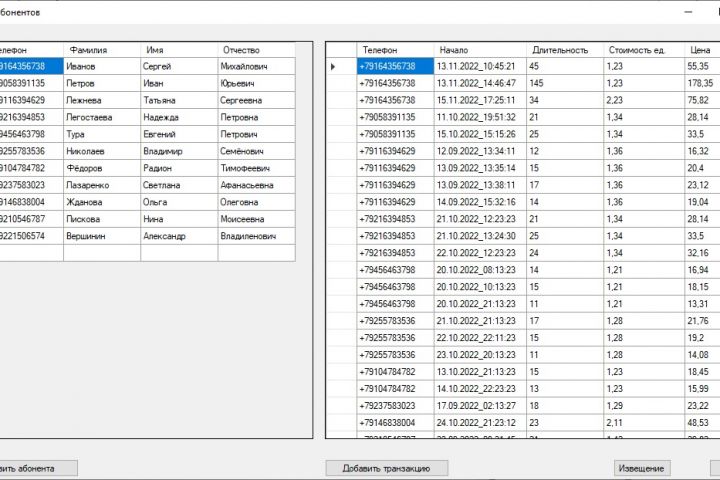 – вводит номер телефона и время разговора;