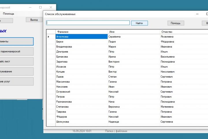 Если БД не существует, то по запуску приложение создаёт данную БД с начальными списками клиентов, парикмахеров и прайс лист. База данных находится файле DB_Hair.mdf в папке Пользователи\User (или имя другого пользователя). По запуску приложения доступны следующие формы из основного окна.