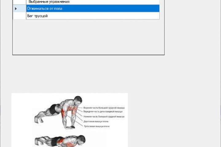 База данных для выбора физических упражнений исходя из целей тренировок. Приложение обеспечивает следующие функции: