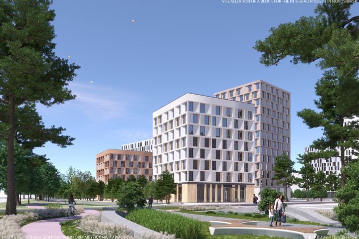 Визуализация квартала для проекта Интеград в городе Новосибирск, концептуальное предложение.