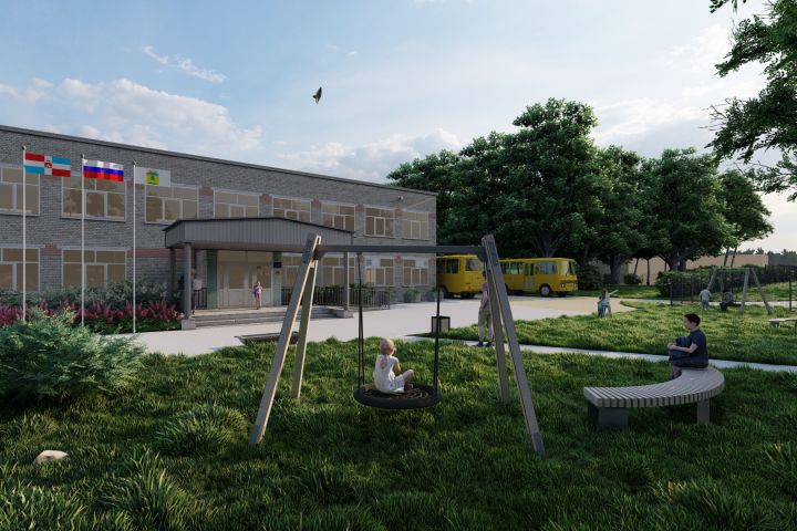 Задача состояла в разработке 3D модели и визуализации территории школы, расположенной в селе Сосновка (Пермский край)