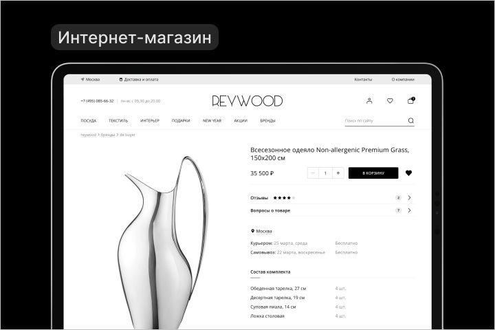 Разработка ux/ui дизайна, дизайн-поддержка интернет-магазина элитной посуды Reywood.