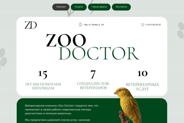 В результате получился функциональный, удобный для посетителей и красивый сайт, который содержит в себе всю необходимую информацию о ветеринарной клинике и служит удобным веб-ресурсом, который привлекает новых клиентов и повышает доход.