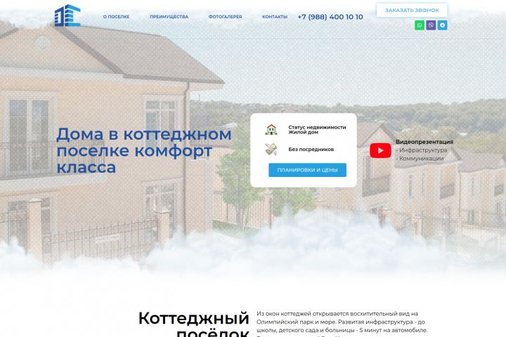 Landing Page для коттеджного поселка "Горная Олипия". Дизайн + Верстка+Backend. SEO-оптимизация.