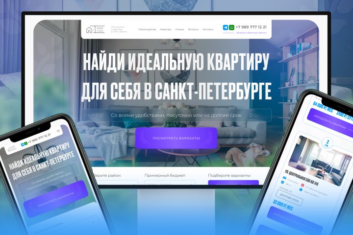 Была задача сделать под ключ одностраничный сайт по аренде квартир и домов. Задача лендинга — продвижение компании, которая занимается сдачей квартир в аренду. По сути, запустили ещё один источник заявок