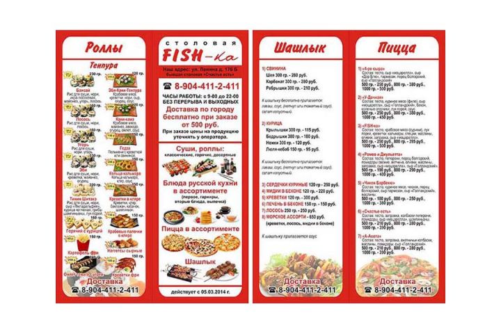 буклет с описанием продукции для столовой