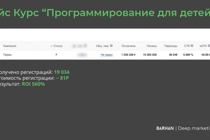 Получено регистраций: 19 034 Стоимость регистрации: ~ 81Р Результат: ROI 560%