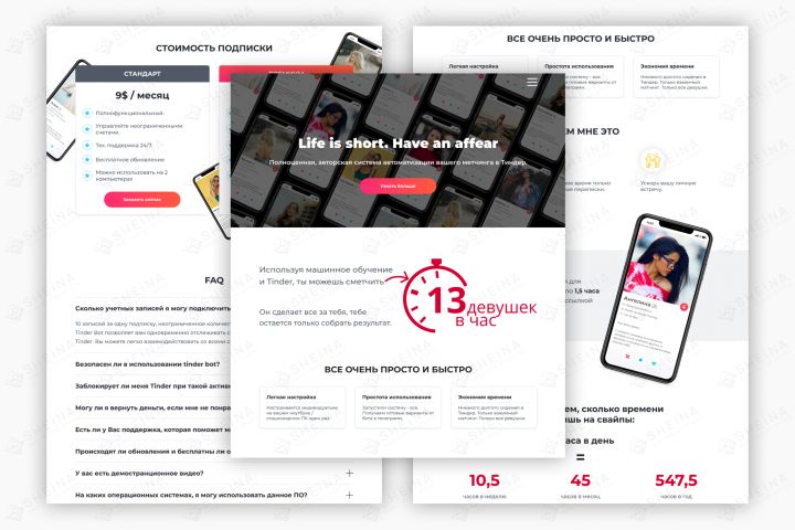 Auto Tinder Bot – бот по автометчингу ~ дизайн и разработка сайта на Тильде (Tilda) ~ лендинг ~ zero-блоки + доработка кодом (HTML + CSS + JavaScript)