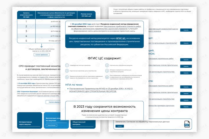 СРО Башкирии – ассоциация строителей ~ дизайн страниц к основному сайту с адаптациями ~ многостраничный сайт