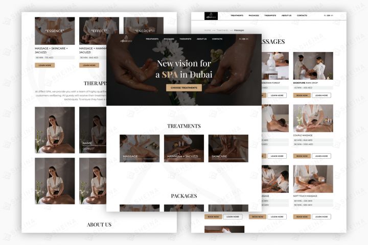 EffectSpa – спа-салон (ОАЭ) ~ дизайн и разработка сайта на Тильде (Tilda) ~ многостраничный сайт ~ zero-блоки + доработка кодом (HTML + CSS + JavaScript)