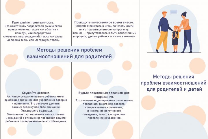 Создание и вёрстка буклета о методах решения проблем взаимоотношений для родителей и детей