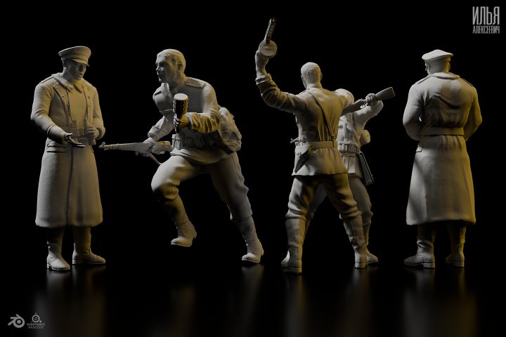 Нужно было поставить в позы солдат по референсу и сдать работу для дальнейшей печати на 3D принтере.