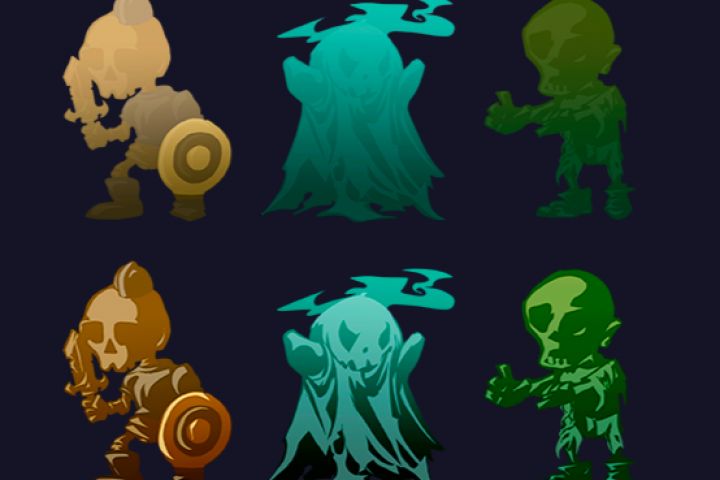 Отрисовка персонажа скелета-воина в казуальную 2д игру + тамбнейлы персонажей призрака и зомби.