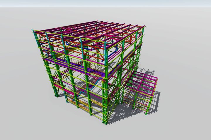 ✅Выполнен проект реконструкции промышленного здания. Масса по #КМД 200,1т. ЭПо времени заняло 2 месяца. Размеры сооружения в плане 28х22м (31м с пристройкой) высота 23м. Основные колонны двухветвевые из сварных двутавров, верхние пояса ферм из прямоугольных труб 180х140, нижние пояса полуферм соединяются высокопрочными болтами класса 10.9. Подкрановые балки из сварного двутавра для мостового крана грузоподъёмностью 16т. Гнутый монорельс из 24М для лебедки грузоподъёмностью 1т. Колонны пристройки из прокатных двутавров 30К1, балки покрытия пристройки 60Б1. Модель и чертежи выполнены в AdvanceSteel2023, рендеры в Lumion10.5