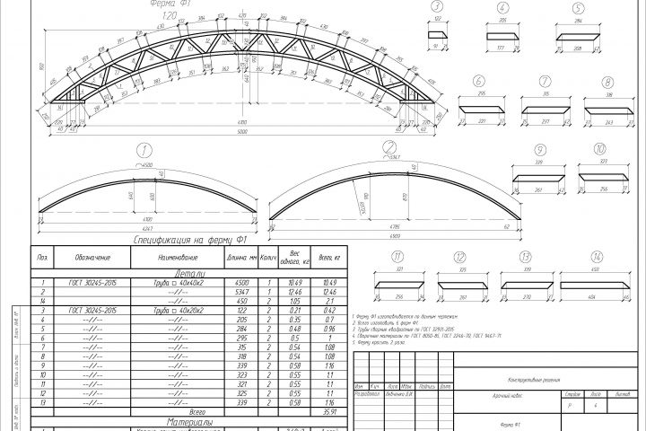 - Выполнил подробные чертежи навеса со всеми спецификациями