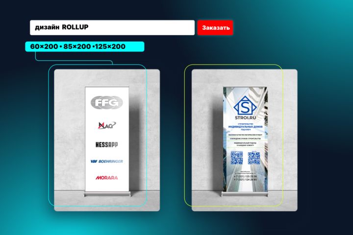 разработка дизайн-макета роллап. Размеры : 60х200 / 85х200 / 120х200