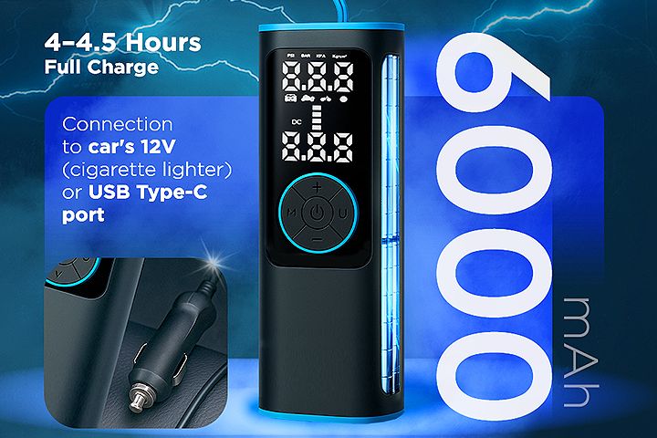 Разработать яркую и информативную инфографику для продвижения портативного компрессора с функцией автоматической накачки шин.