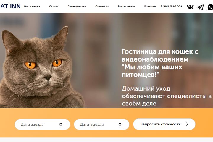 В проекте Cat Inn я отвечал за верстку и WordPress-разработкуб,а также за некоторые правки в самом дизайне. Моя задача заключалась в создании уютного, адаптивного и интуитивно понятного интерфейса, который отражает атмосферу заботы и комфорта, присущую гостинице для кошек. Я реализовал удобную структуру страниц, интегрировал сайт с WordPress, настроил админку для лёгкого управления контентом и обеспечил стабильную работу всех функциональных блоков. В результате получился тёплый, визуально приятный сайт, который не только рассказывает о сервисе, но и вызывает доверие с первого взгляда.