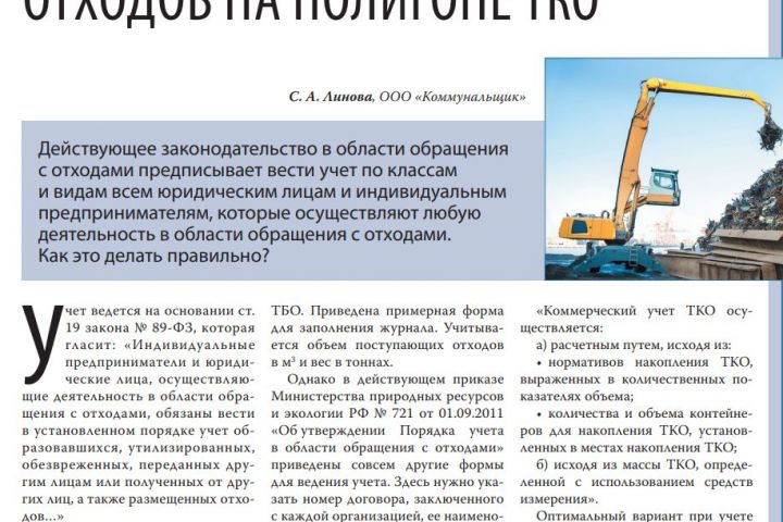 Написать статью для журнала “ТБО”. Журнал освещает актуальные вопросы, связанные с деятельностью в области обращения с отходами.