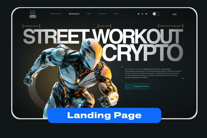Сайт сочетает в себе элементы кибернетики, криптовалюты и спорта, создавая визуальную атмосферу, которая вдохновляет пользователей на активные действия и вовлечение в мир воркаута. Я использовал современные графические решения и анимации, чтобы сделать интерфейс не только привлекательным, но и интуитивно понятным.