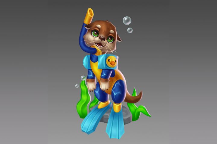 Сasual otter character in swimsuit with armbands with ducklings, getting ready for water adventures Link to work in portfolio: https://www.artstation.com/artwork/WX3qnv