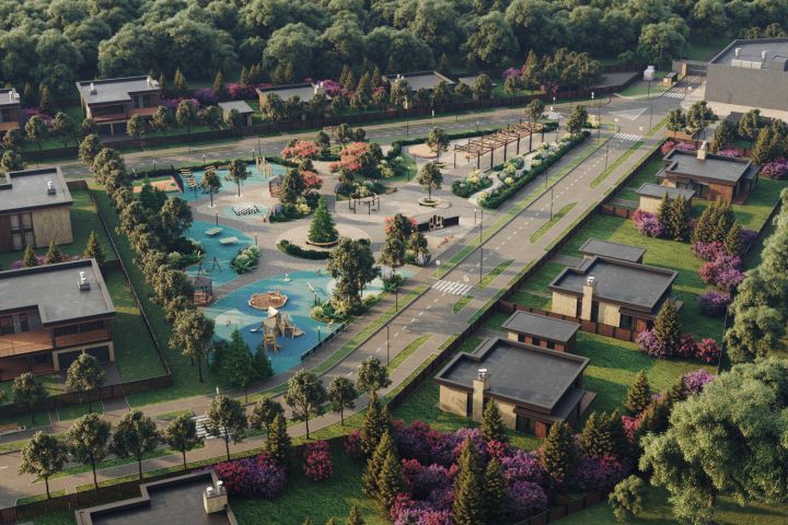 - парк культуры и отдыха для обеспечения досуга жителей и гостей поселка (событийная площадь для проведения мероприятий, детские и спортивные площадки, зона тихого отдыха, светящаяся пергола, скамьи и урны);