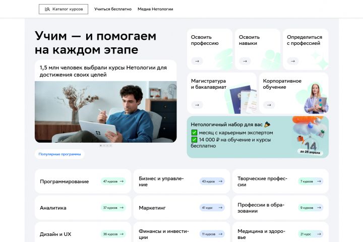 Герой-секция с четким value proposition ("Освойте профессию мечты")
